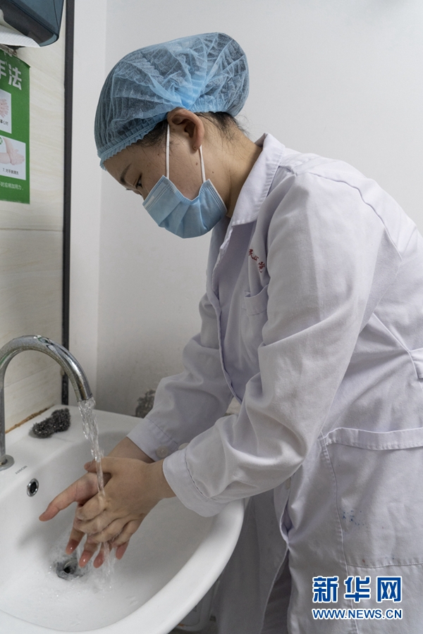 5月8日,在四川省第四人民医院,佘沙在洗手。