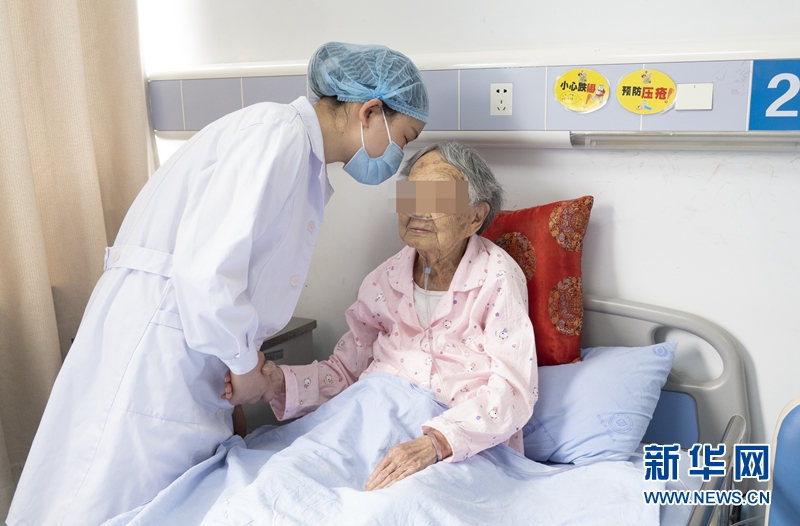 5月8日,在四川省第四人民医院,佘沙与病人交流。