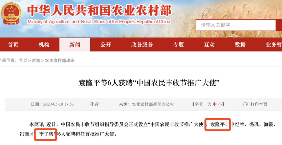 大意是说中国农民丰收节组织指导委员会,正式设立“中国农民丰收节推广大使”,受邀担任首批推广大使的有6个人。