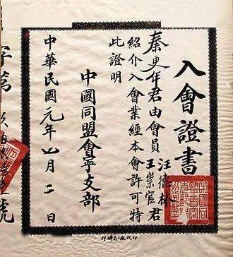 同盟会入会证书
