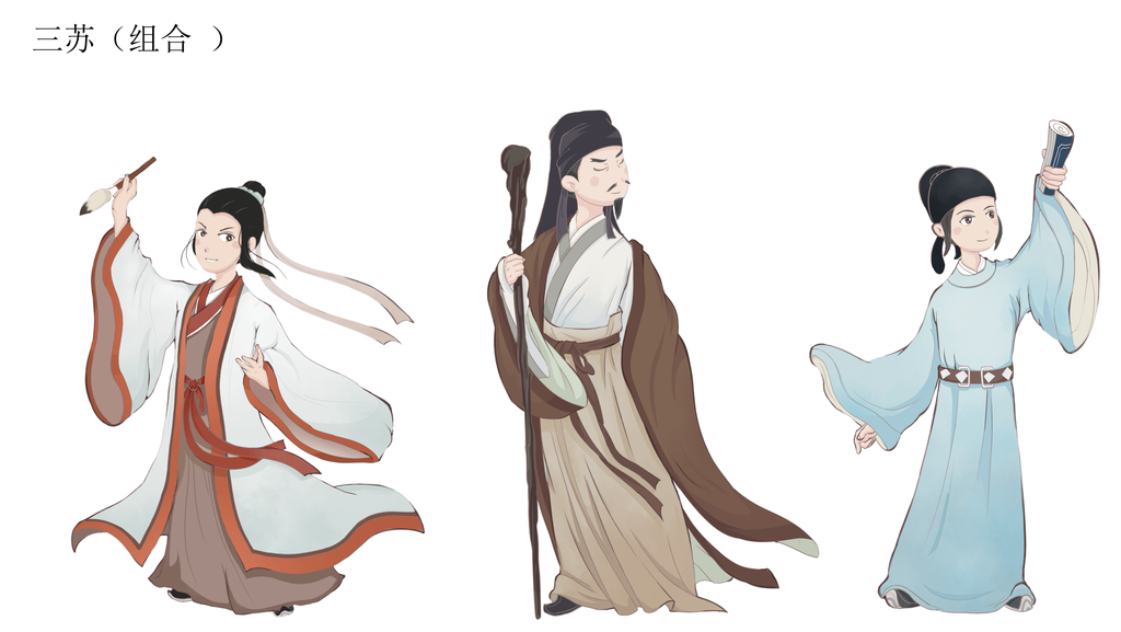 近日,眉山三苏祠组建专业团队,根据宋代人物绘画、服饰文献以及描写三苏父子样貌的文字,结合当下流行的新国风绘画,绘制了三苏父子的“青春照”。
