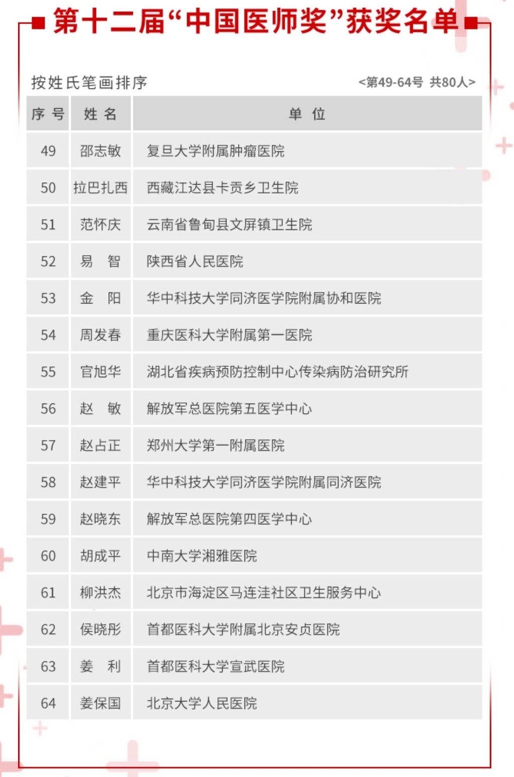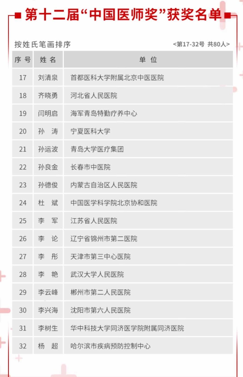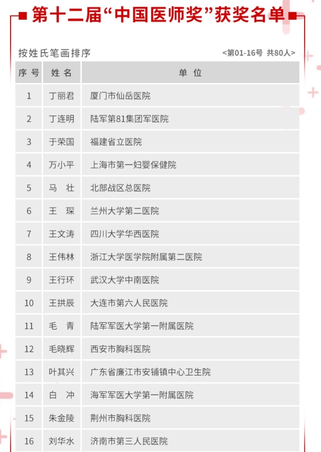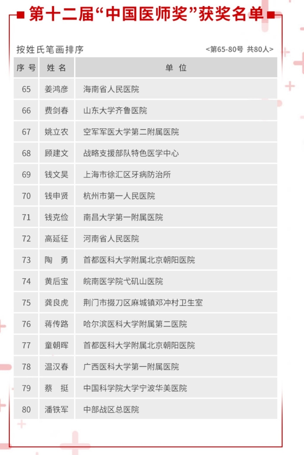 附:第12届中国医师奖获奖名单