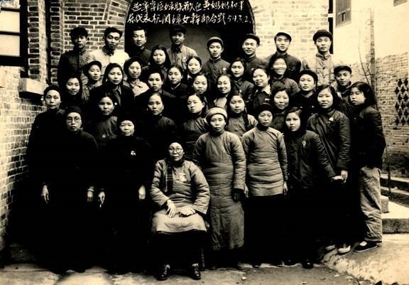1954年3月2日遂宁专区妇联欢迎黄妈妈和军属代表机关妇女干部合影(遂宁市档案馆提供)