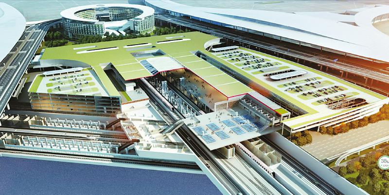 航站楼GTC(综合交通枢纽)局部剖面效果图。