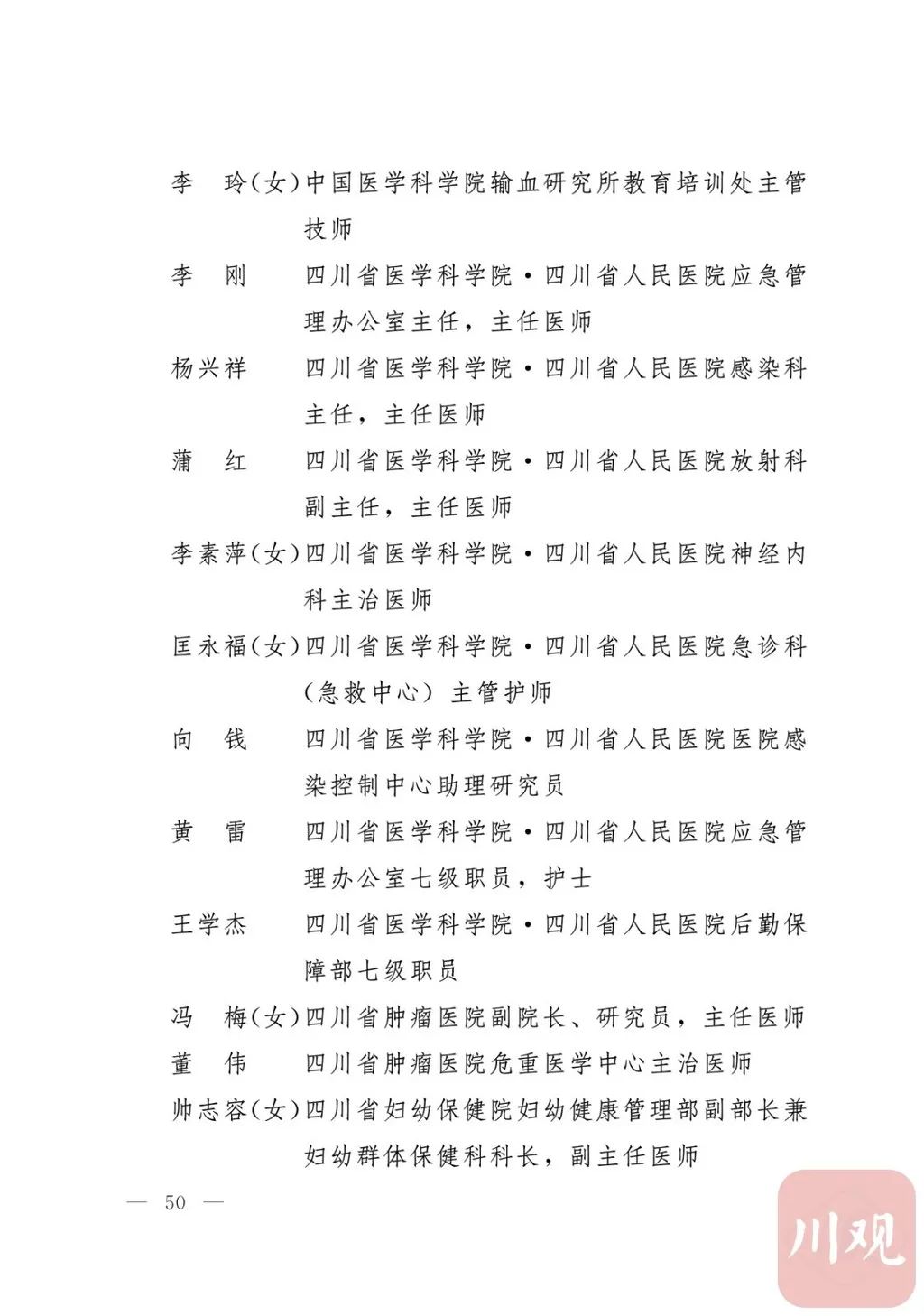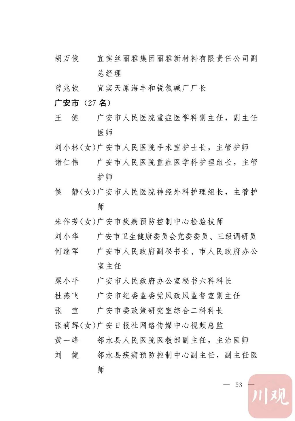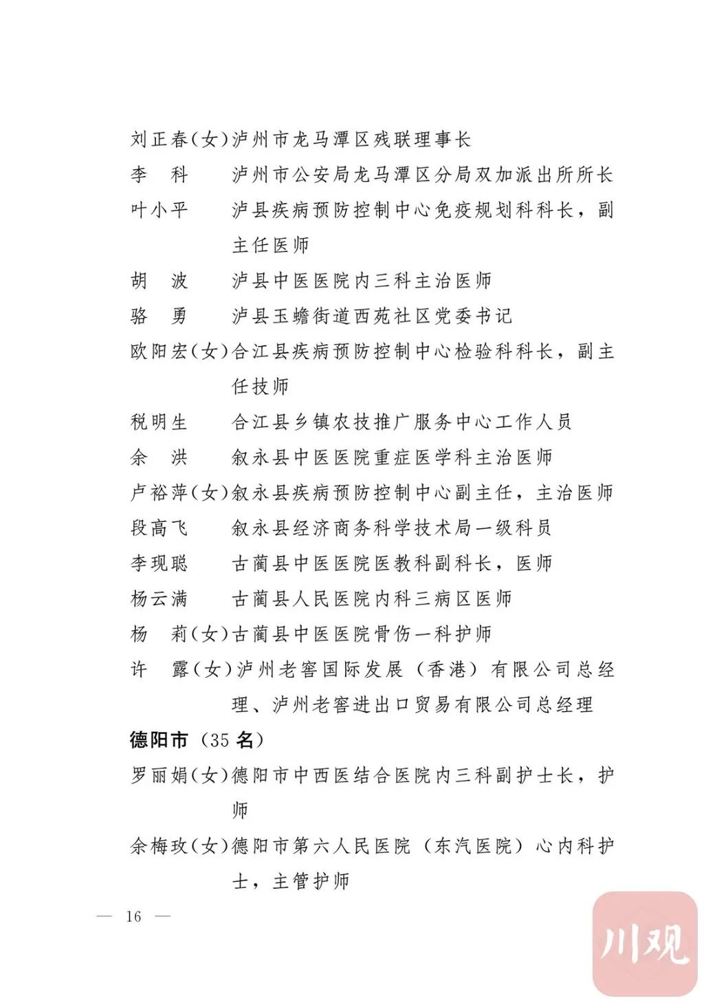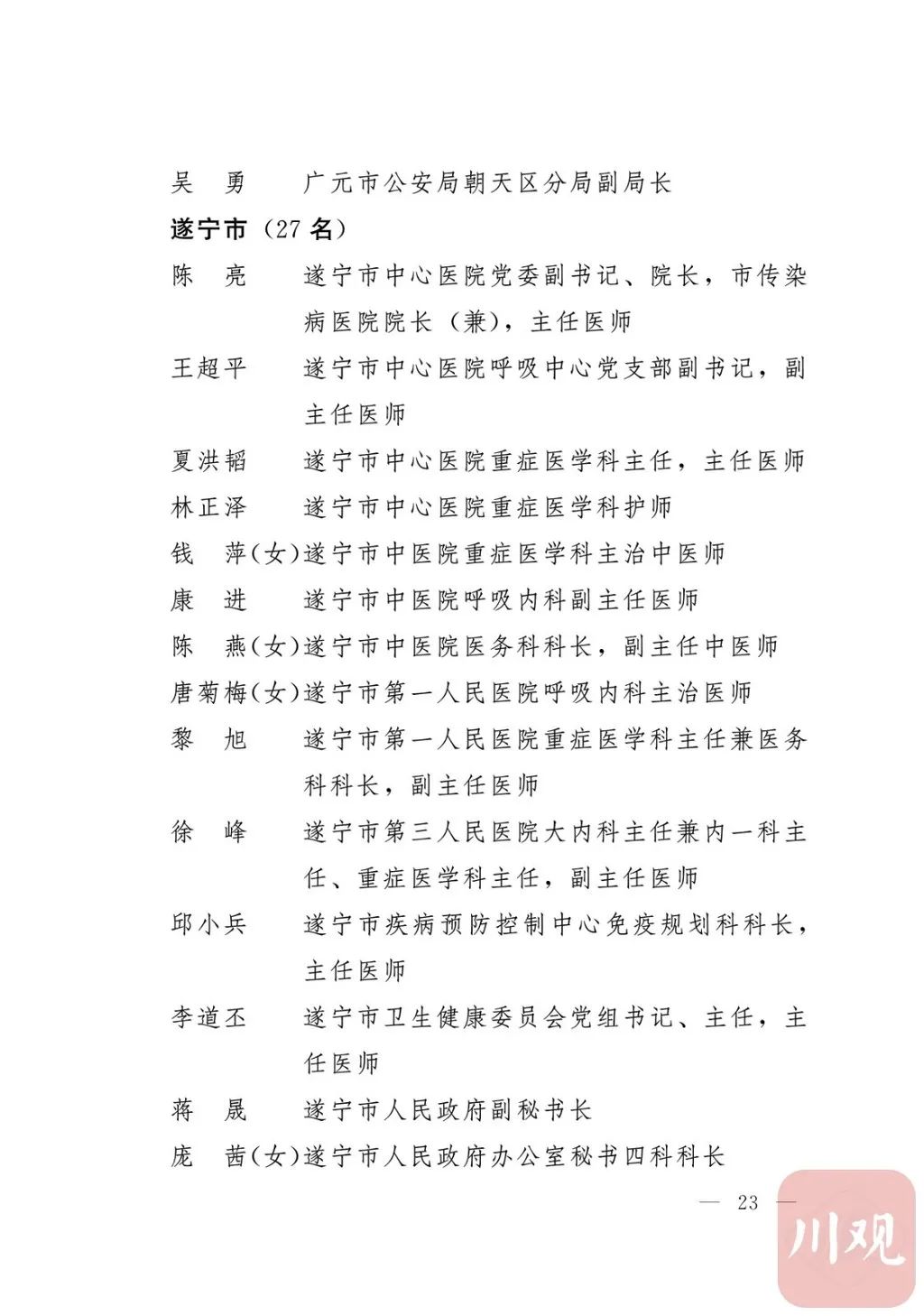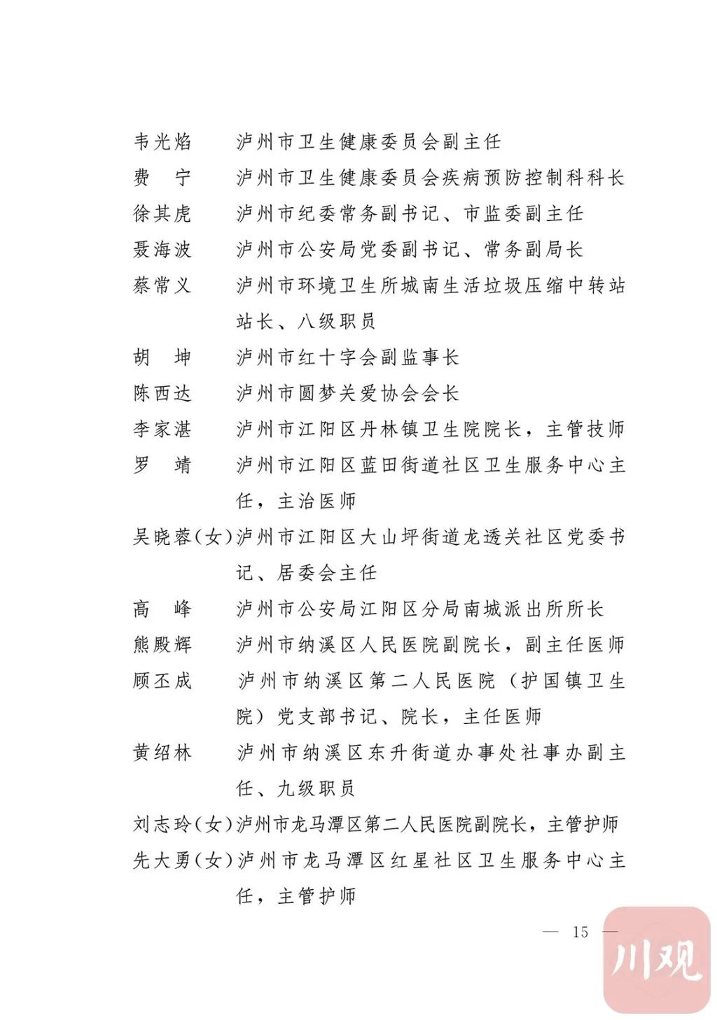 新冠肺炎疫情发生后,以习近平同志为核心的党中央统揽全局、果断决策、沉着应对,领导全党全军全国各族人民打好疫情防控的人民战争、总体战、阻击战,夺取了抗疫斗争重大战略成果。省委深入学习贯彻习近平总书记关于疫情防控工作重要讲话和重要指示批示精神,坚决贯彻党中央决策部署,团结带领全省上下认真落实坚定信心、同舟共济、科学防治、精准施策总要求,同时间赛跑,与病魔较量,凝聚起众志成城、无坚不摧的磅礴力量,疫情防控取得重大战略成果。广大基层党组织闻令而动、主动担责、守土尽责,充分发挥战斗堡垒作用,筑起守护人民生命安全和身体健康的严密防护网;广大党员挺身而出、冲锋在前,不畏生死、英勇奉献,充分发挥先锋模范作用,当好人民群众最可靠的主心骨,让鲜红的党旗在疫情防控斗争第一线高高飘扬,书写了可歌可泣、荡气回肠的壮丽篇章。为弘扬伟大抗疫精神,激励各级党组织和广大党员干部不忘初心、牢记使命,勇往直前、接续奋斗,省委决定,授予张仁卿等117名共产党员“四川省优秀共产党员”称号,追授高义泉等3名共产党员“四川省优秀共产党员”称号,授予成都市疾病预防控制中心党委等100个基层党组织“四川省先进基层党组织”称号。希望受表彰的党员和党组织珍惜荣誉、再接再厉,充分发挥模范带头作用,为党和人民事业再立新功。这次受表彰的优秀共产党员和先进基层党组织,是全省抗击新冠肺炎疫情先进个人和先进集体中的优秀代表。他们的先进事迹和崇高精神,有力彰显了中国共产党无比坚强的领导力,集中体现了中国特色社会主义制度的显著优势,鲜明昭示了党全心全意为人民服务的根本宗旨,全面反映了坚决做到“两个维护”的实际成效,充分展现了共产党人的担当和风骨。全省各级党组织和广大党员干部要以他们为榜样,学习他们信念坚定、对党忠诚的政治品质,牢记宗旨、服务群众的为民情怀,迎难而上、敢于斗争的坚定意志,恪尽职守、无私奉献的优良作风,切实增强“四个意识”、坚定“四个自信”、做到“两个维护”,始终把人民放在心中最高位置、保持同人民群众的血肉联系,关键时刻冲得上去、危难关头豁得出来、重大斗争中经得起考验,忠诚履职、团结一致,汇聚起干事创业的强大力量。当前,决胜全面建成小康社会、决战脱贫攻坚的目标任务艰巨而繁重,开启全面建设社会主义现代化国家新征程、向第二个百年奋斗目标进军的时代使命神圣而光荣。各级党组织和广大党员干部要更加紧密地团结在以习近平同志为核心的党中央周围,坚持以习近平新时代中国特色社会主义思想为指导,认真学习贯彻党的十九大和十九届二中、三中、四中、五中全会精神,深入贯彻习近平总书记对四川工作系列重要指示精神,全面落实党中央和省委决策部署,提高政治能力,保持战略定力,脚踏实地、埋头苦干,锐意进取、砥砺前行,在危机中育先机、于变局中开新局,统筹推进常态化疫情防控和经济社会发展,加快推进成渝地区双城经济圈建设,为谱写四川“十四五”发展新篇章、推动治蜀兴川再上新台阶作出新的更大贡献。四川省抗击新冠肺炎疫情优秀共产党员名单(120名)四川省抗击新冠肺炎疫情先进基层党组织名单(100个)中共四川省委