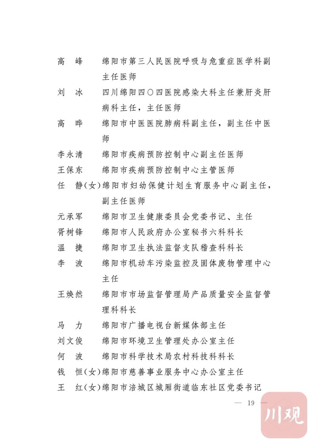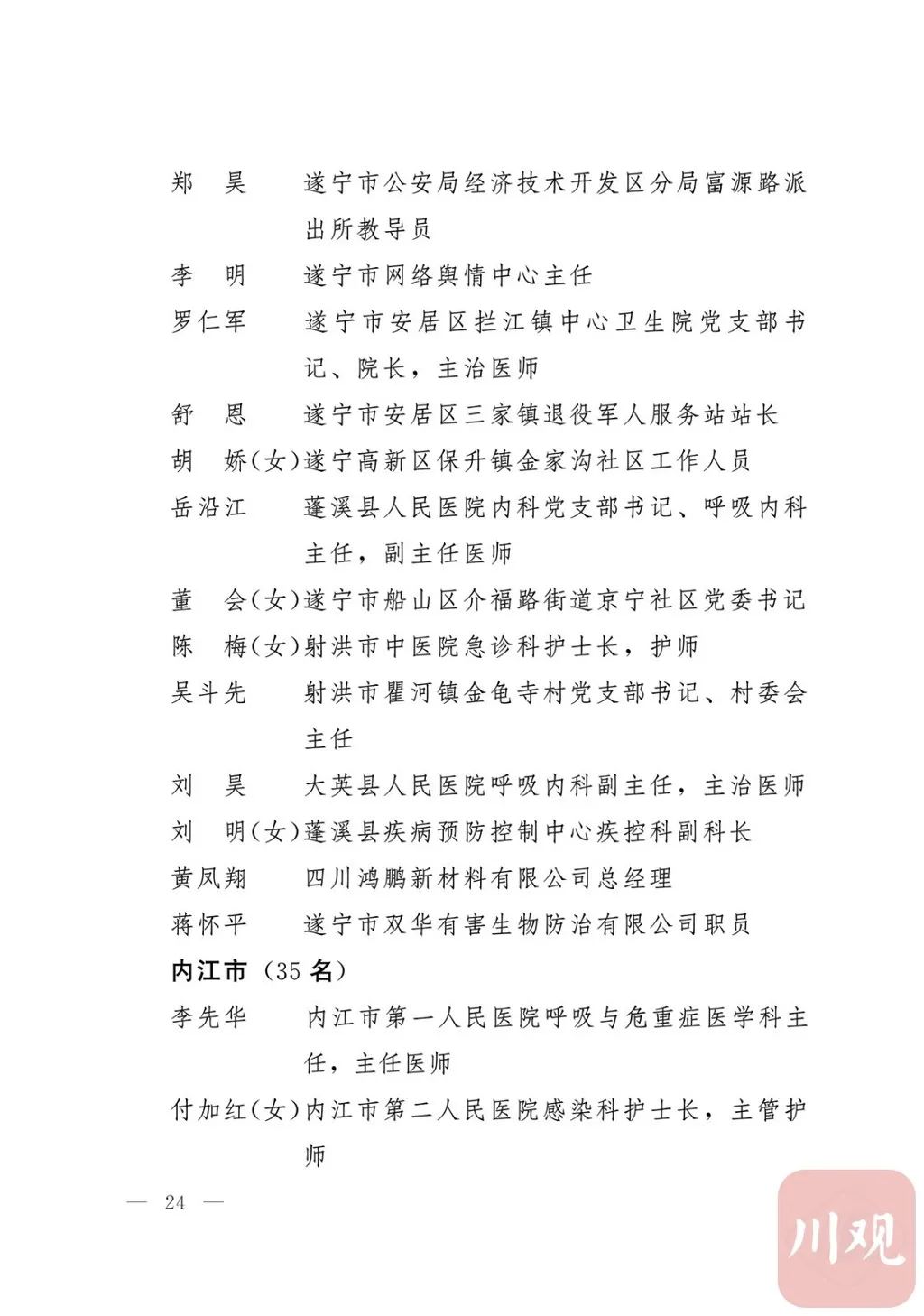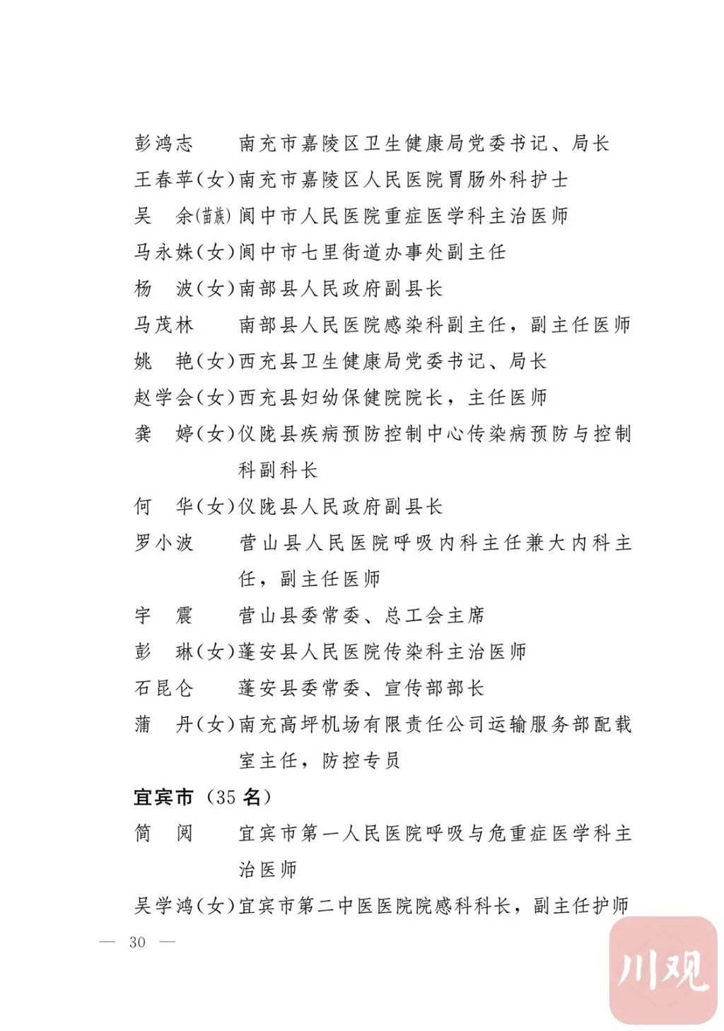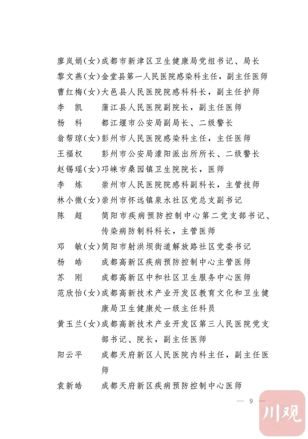 关于表彰四川省抗击新冠肺炎疫情先进个人和