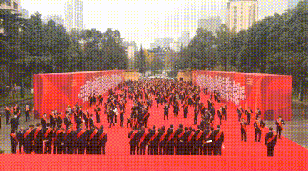 45分钟之后,我省第八届劳动模范和先进工作者表彰大会,将在金晓博对面的锦江大礼堂举行。在金晓博的脚下,是从锦江大礼堂阶梯处各色鲜花和一直延伸到大礼堂广场入口的红毯。这阶梯上的鲜花和3500平方米的红毯,是本次表彰大会上,省委省政府对受表彰人员的敬意之一,也是对其礼遇的最直观体现。顺着大礼堂广场入口往里面走,是两块45米*4.5米的光荣墙,上面展示着这场来参加表彰的798名劳动模范和先进工作者头像。