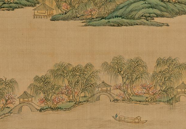 快到晌午。江面上有一只乌篷船,慢慢地靠来。
