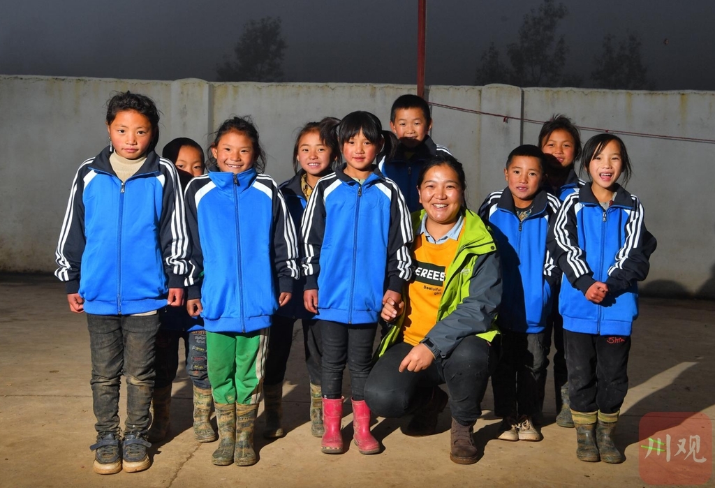 这是杨卓玛跟当年幼儿园的小朋友再次合影,很多小朋友已经上小学。(2021年1月摄)