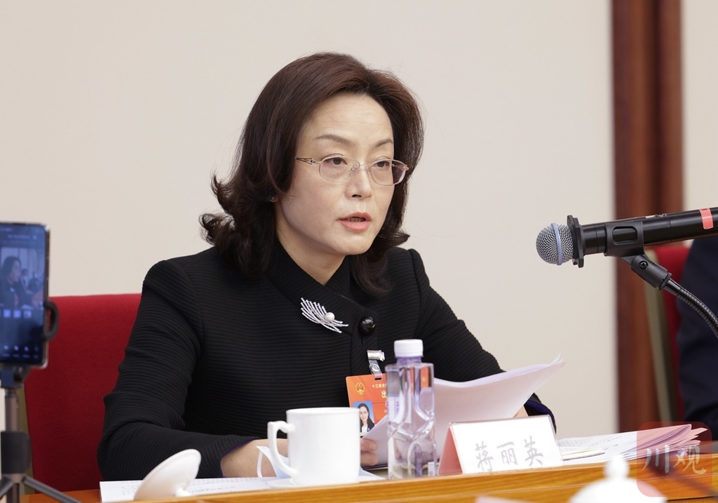 蒋丽英代表就完善基层常态化使用中央直达资金的机制问题发言。