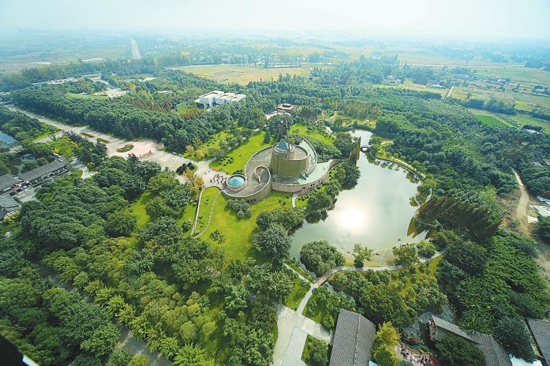 肖先进,三星堆博物馆第一任馆长。他创新“馆园”建设思路,在他和同事努力下,将历史文化的厚重与现代休闲的轻松巧妙融汇,让古文明的优雅与大自然的质朴浑然一体,成功将三星堆博物馆打造成首批国家4A级景区、首批“国家一级博物馆”和首批“国家考古遗址公园”。鸟瞰三星堆博物馆。本版图片均由受访者提供