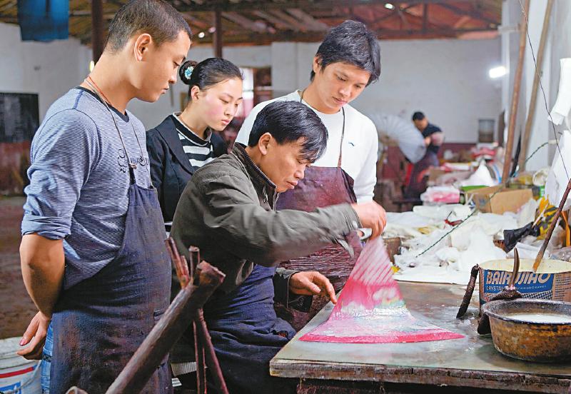 传承毕六福手艺的人也在变多。“收10个徒弟,两三个月走了一半,因为手工业,光学会不够,还要够快,手慢了,钱就挣得少。还好,现在也有徒弟,在贵州、江西、浙江开店做油纸伞生意了,也算一种传承。”毕六福说。