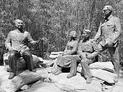 坐落于中国人民大学校内的雕像“吴玉章校长与学生在一起”。图片由中国人民大学档案馆提供