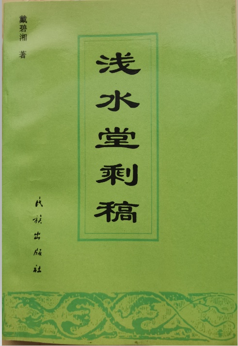 “浅水堂”是浅水堂主人戴碧湘谦谦君子的书斋号。《浅水堂剩稿》一书约20万字,民族出版社于1994年出版。这本书,之所以被戴碧湘感慨地称为"剩稿”,是因为1948年底部队打锦州夜过大凌河时,他之前所保存的资料和发表的作品全部被汹涌的河水无情吞噬。而现辑存的文稿,均为1949年之后所写,故名“剩稿”,表达了他的敝帚自珍之情,展示了属于他的“为霞尚满天”之境。