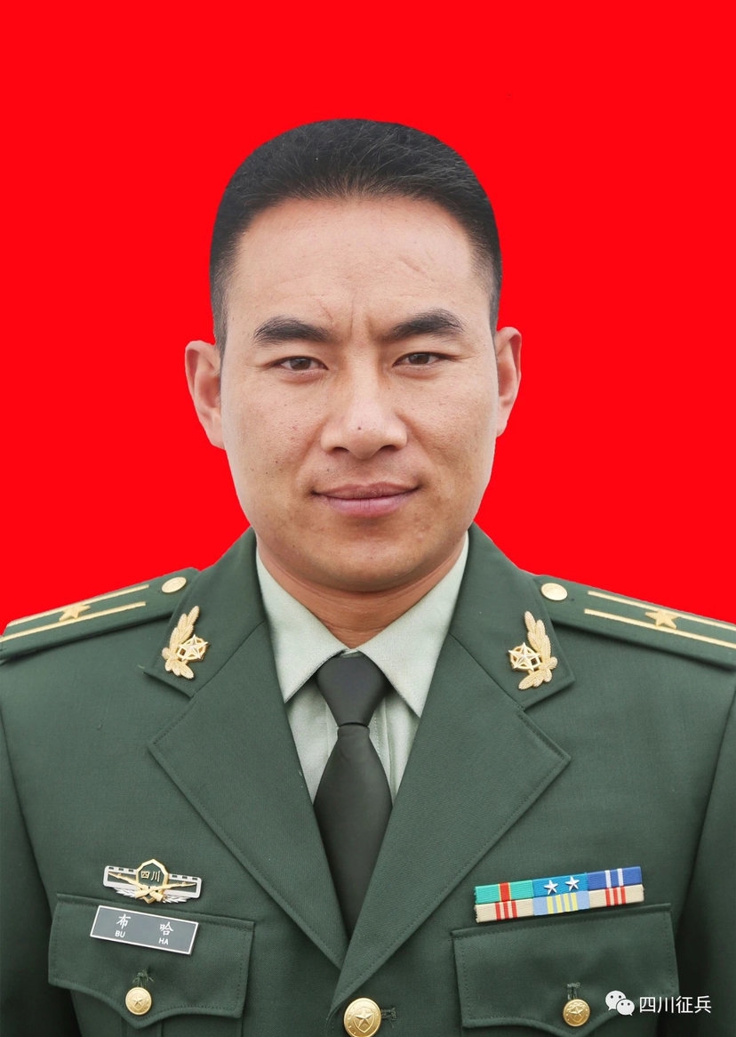 从军报国的信仰代代传承,一批又一批新时代的四川军人用行动践行誓言。彝族小伙布哈生长于大凉山,吃百家饭、穿百家衣长大,高考那年成为全县文科状元。大学毕业后,布哈入伍回到家乡,服役于武警凉山支队某大队,从此投身于家乡火热的脱贫攻坚战场。 梭梭拉打村任驻村干部期间,布哈办教育、抓产业,该村贫困发生率由2017年的34%实现归零,151户贫困户全部脱贫。“我是吃百家饭长大的孩子,能够从军回报家乡,我感到很自豪。”布哈说。因在脱贫攻坚工作中的突出表现,2020年布哈荣立一等功。
