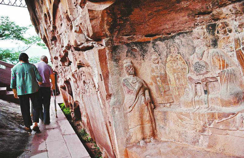 石佛寺的崖壁上雕刻有唐宋时期的摩崖造像。