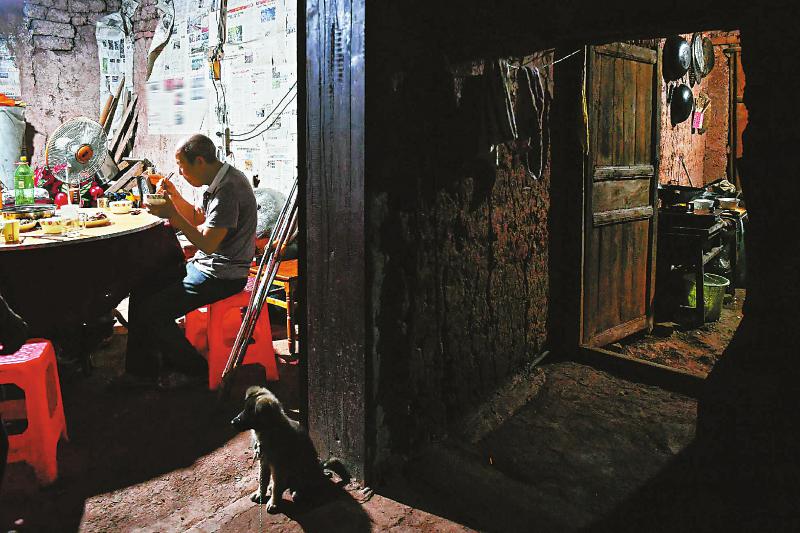8月19日,老人在紧邻石佛寺的家中吃晚饭。