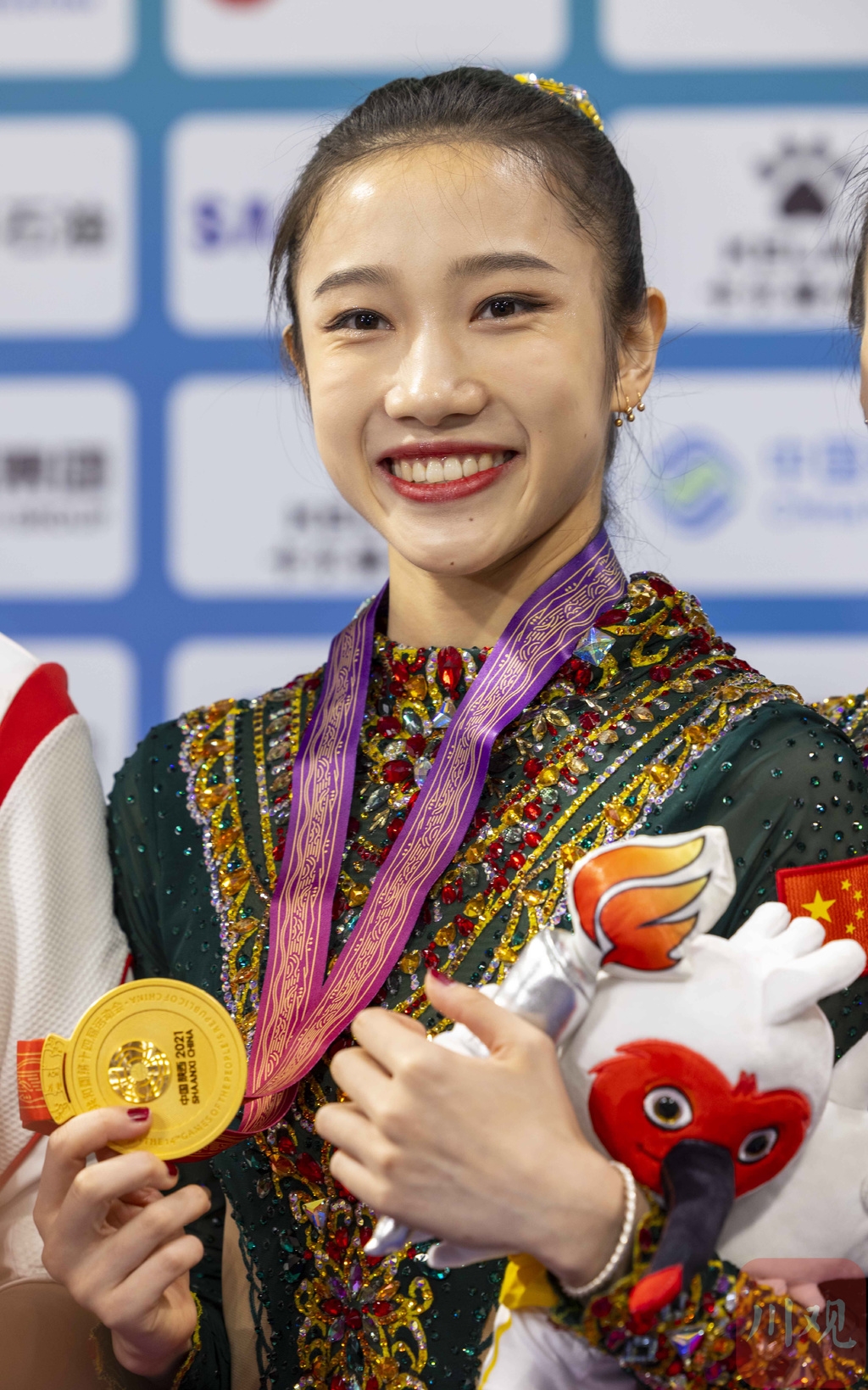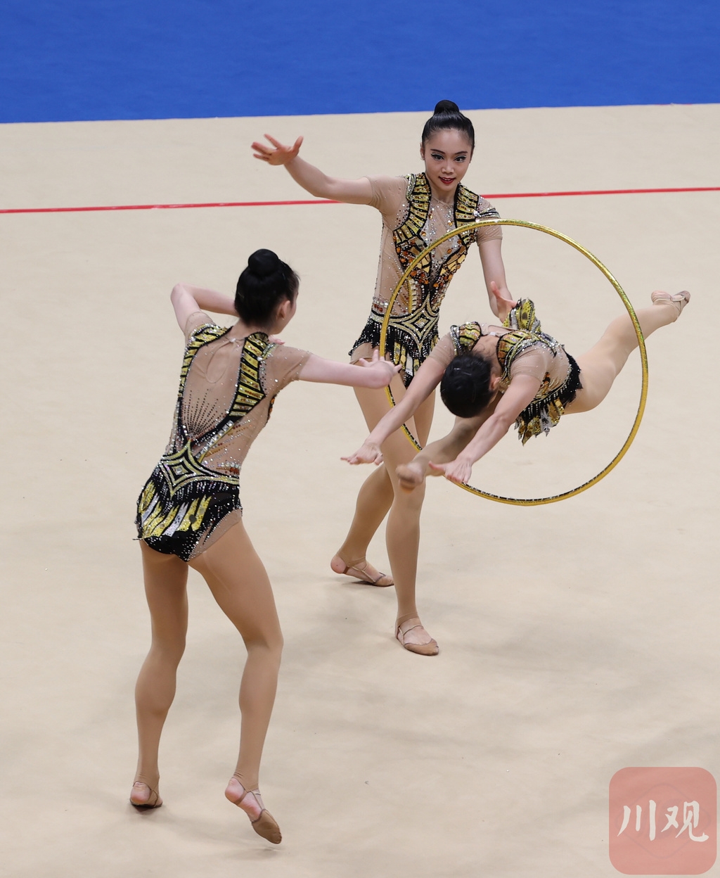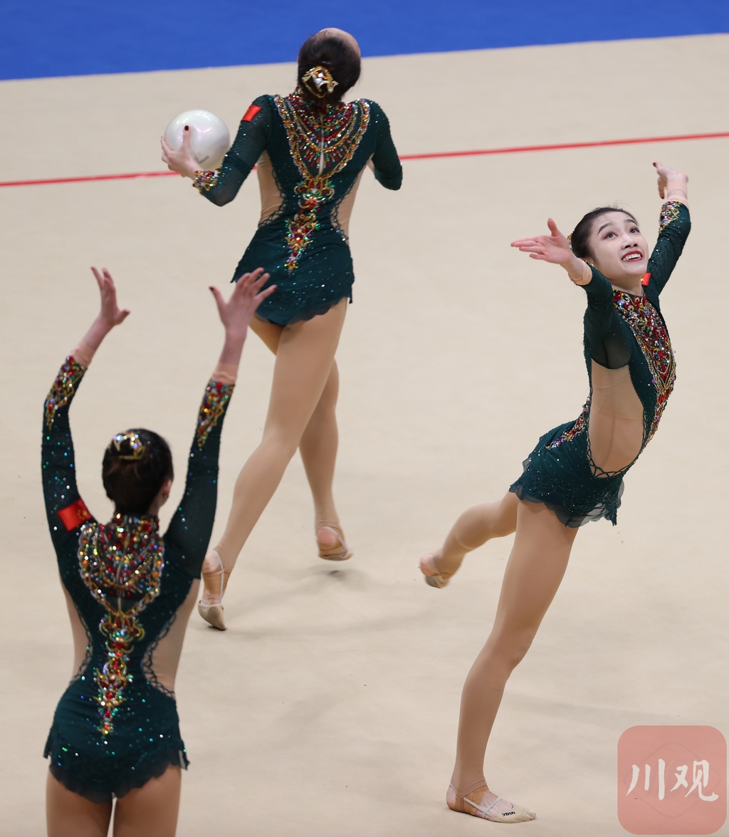 9月13日,第十四届全运会艺术体操项目进入最后一个比赛日的争夺,集体全能比赛在西北大学长安校区体育馆进行。最终,国家艺术体操队姑娘们组成的奥运联合队以绝对优势夺冠,其中来自四川成都的黄张嘉洋拿到了本届全运会成都的首枚金牌!四川队夺得该项目银牌。