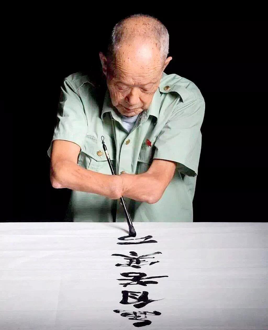 四川省南部县抗美援朝英雄周全弟在练习书法