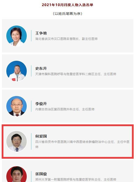 四川医生何爱国上榜“中国好医生、中国好护士”10月月度人物