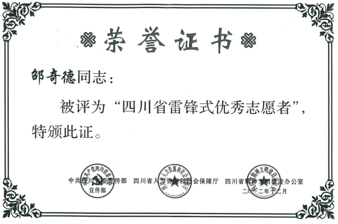 在市老科协工作期间,参与科普宣传,帮助公民提升科学素质。创办《科普园地》和《科普画廊》,亲自撰写科普稿件,校对、张贴等工作。成立科普报告团,提升科普效果,组织专家深入社区、学校、乡镇作科普讲座400多场,听众数万人次。2012年12月,省委宣传部、省人社厅、省精神文明办联合授予我“四川省雷锋式优秀志愿者”光荣称号。