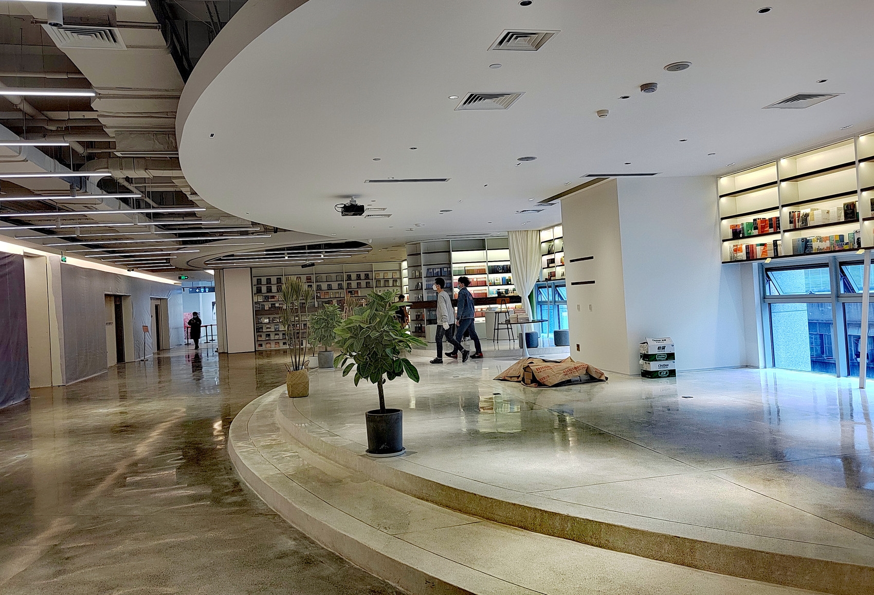 从高挑的西部文化产业中心大堂乘坐扶梯直上,到达5层,阿来书房就在眼前了。“阿来书房”牌匾还未悬挂,倒是洁白的门头上有阿来书房的logo字样,而值得期待的还是那块牌匾,想必是得启幕当天才会揭开神秘面纱了——那是文坛巨匠马识途在107岁时挥毫泼墨,专门为书房题写的,四字苍劲有力,端庄大气。