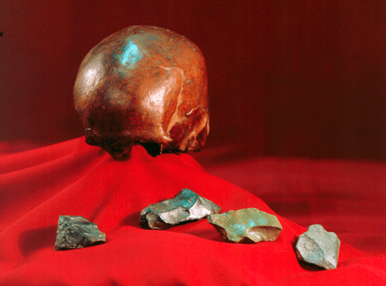 “资阳人”头骨以及头骨旁的旧石器时代唯一骨锥