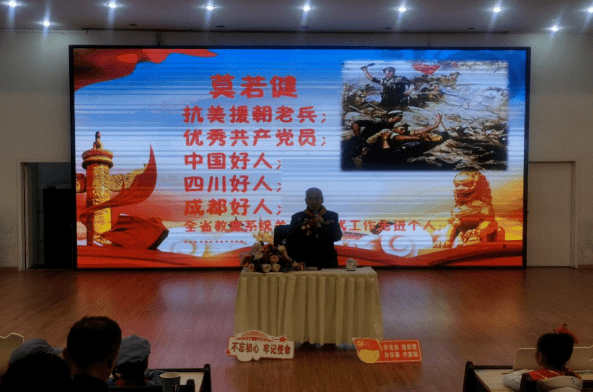2021年4月,时任金牛区教育系统关工委成员的许家玲向莫若健发出邀请,希望他在建党100周年到来时,能再到学校给孩子们讲一堂课。91岁的莫若健,看上去仍是比实际年龄年轻许多,在茶店子小学多功能厅,“小红军”给他系上红领巾,他展开了讲述。他身后有凳子,但一直没有落座,声音、仪态都很出色,比他年轻时只多白发,不少激情。他的语言从硝烟中走来,带着大爱的情怀。回望一生的精彩,直到掌声响起来,莫若健,望向了孩子们,就像看到了很多年自己。