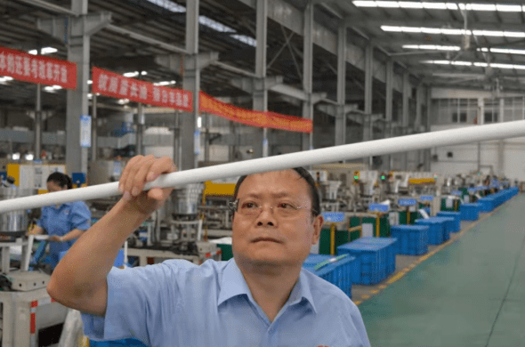 在李白千主导下,日丰从研发到生产建立了完整的质量管理体系。每款产品从实验室研发到成功量产,都要先经过5000次以上冷热水循环试验,验证配方、工艺的优化,再由技术人员进行两周的模拟管道生产,检测产品的生产工艺以及生产质量。检测数据合格后,再进行“放大性试验”,即在车间随机安排班组进行生产。当车间生产出来的产品达到实验室认证水平,新产品才能实现量产,并且在正式生产过程中,每200米就要对管材进行尺寸、外观、受力等检验测试;出厂成品每90千米要进行爆破、扩径、静液压等测试,确保每1米日丰管都管用50年。
