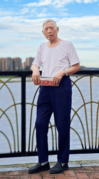 2017年夏天,魏伯良将军在洪雅县青衣江边留影
