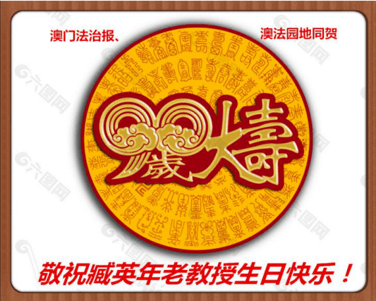 《澳门法治报》和《澳法园地》给臧英年教授90大寿的牌匾
