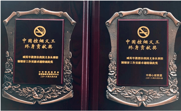 2019年6月6日,臧英年教授结束在中国的控烟活动返美前,中国预防医学会、中国心脏联盟和中国健康发展研究中心3个单位颁赠了“中国控烟义工终身贡献”奖牌给他,将臧英年教授在华20多年的控烟活动画了一个圆满句号。