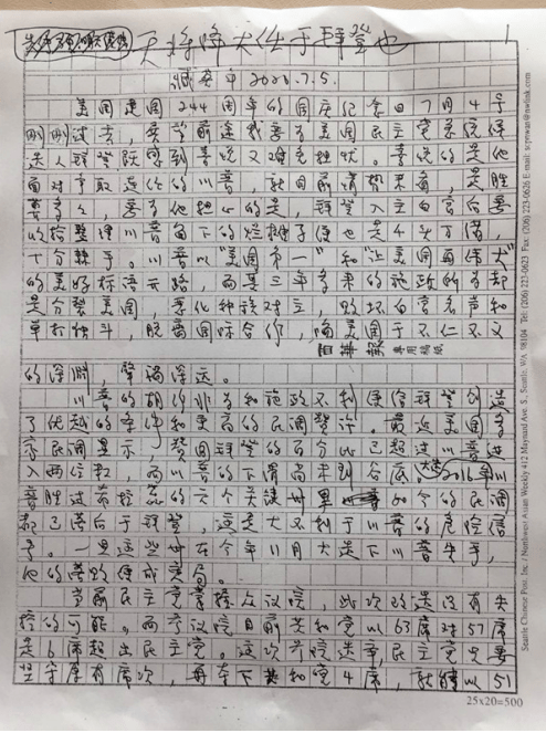 臧英年教授在拜登竞选总统时的时事评论草稿