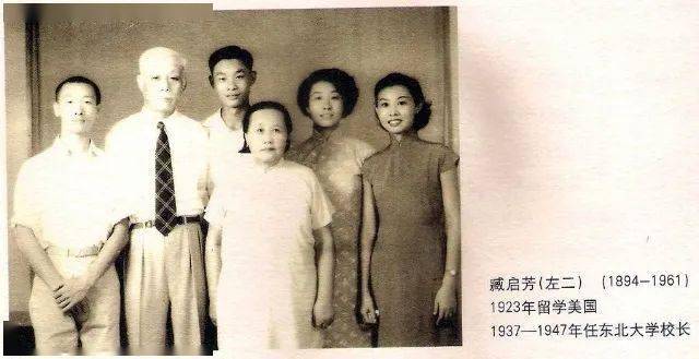 内迁三台时国立东北大学校长藏启芳(左二)(图片来源:《永远不倒的东北大学》)