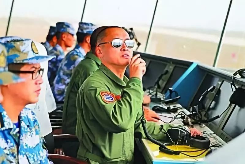 2015年9月22日,戴明盟在塔台上指挥飞行训练(新华社发)