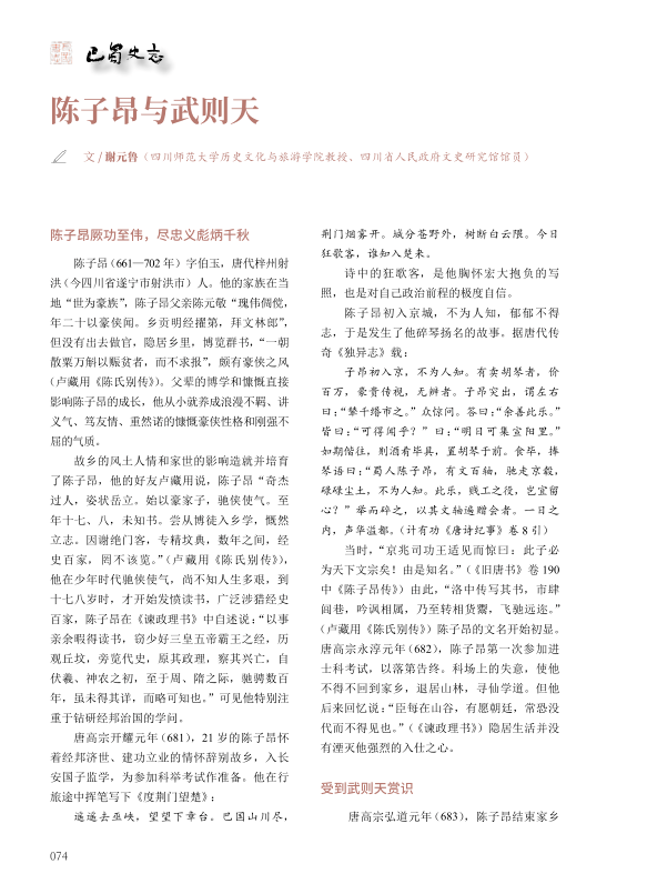 【四川历史名人】陈子昂与武则天(上)‖ 谢元鲁