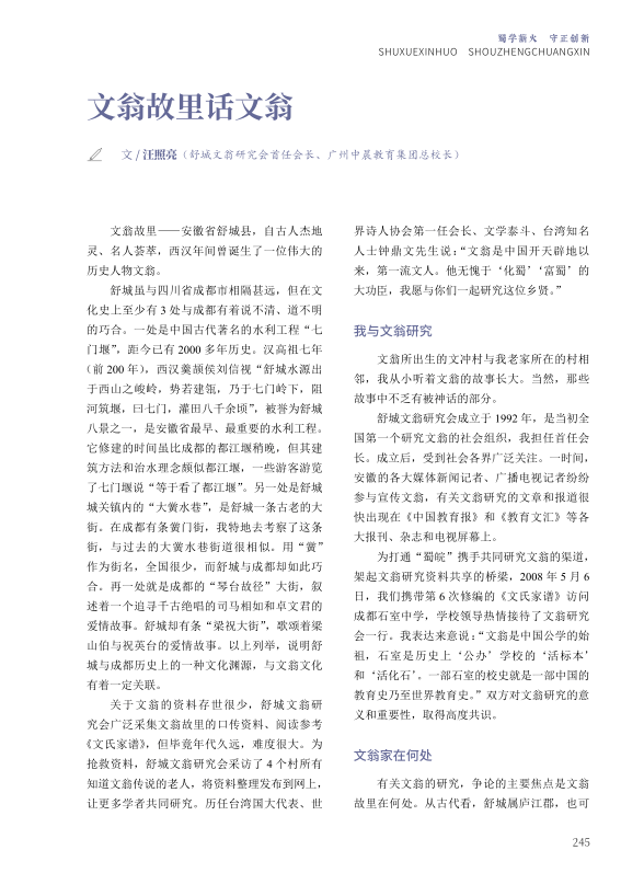 作者:汪照亮(舒城文翁研究会首任会长,广州中晨教育集团总校长)
