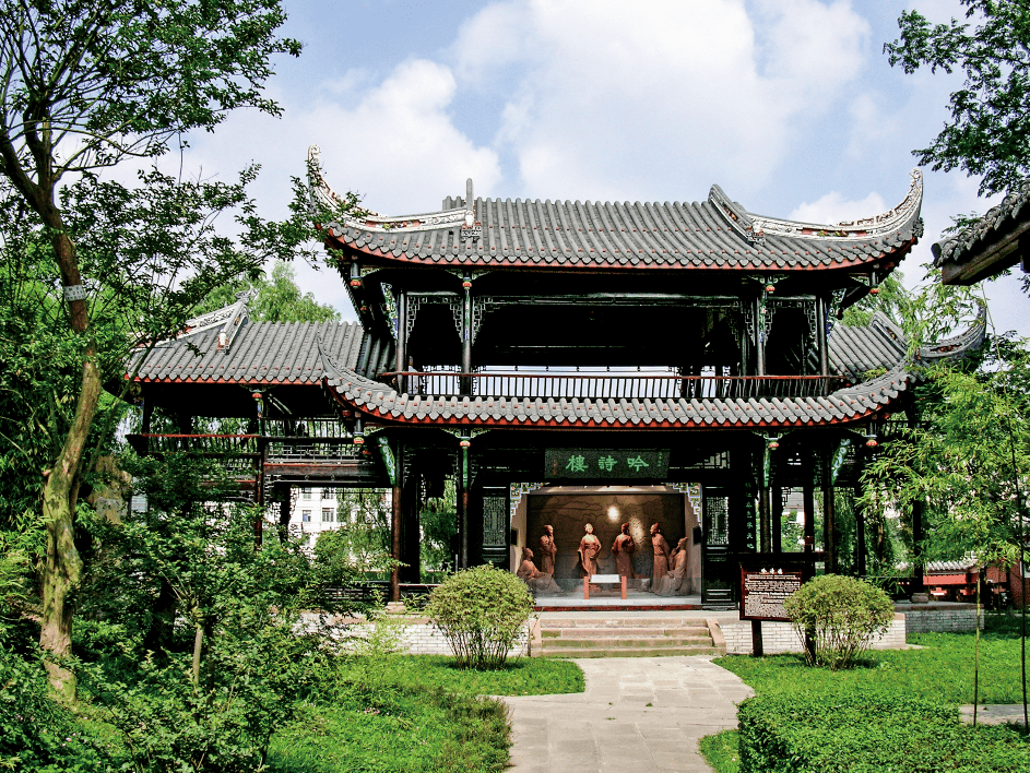 总之,薛涛笔下的竹,是薛涛自身志向、节操和不幸命运的一面镜子。同时,在并非华丽的词藻下却饱含着华夏竹文化的精髓。在中华竹文化发展史上,她占据着传薪火、开新路的承上启下的关键地位。她上承华夏老祖宗的“淇水绿竹”文化和“竹林七贤”文化的薪火,下则开启宋以后淡雅飘逸竹韵诗和文人墨竹画的新路。在宋代竹文化标识性人物文同、苏轼身上,更可以领悟到薛涛爱竹、敬竹、崇竹、拜竹审美情趣和神韵的影响。苏轼“宁可食无肉,不可居无竹。无肉使人瘦,无竹使人俗”的优雅竹居、诗意生活的美学观,其中就包含着薛涛创吟诗楼,追求诗意书香生活理想的文脉基因,更是传统的诗意“水竹居”成都林盘仙居(竹林茅舍、小桥流水)优雅生活方式在心灵享受上的艺术反映。同时,以他们为代表的巴蜀吟竹诗人们,从古至今,对成都平原竹林仙乡特色生态人居环境文化的形成、发展和开拓,起了学术和内涵支撑的关键作用。