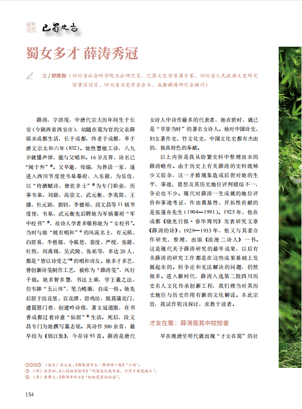 蜀女多才 薛涛秀冠 ‖ 谭继和
