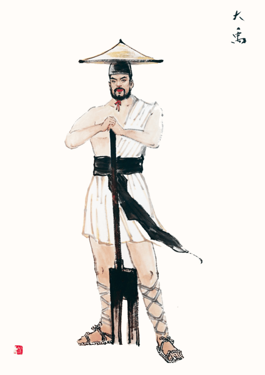 《三国志•蜀书•秦宓传》:“禹生於茂州汶川县,本冉駹国,皆西羌。帝禹有夏氏,母曰修己,出行,见流星贯昴,梦接意感,既而吞神珠。修己背剖,而生禹于石纽。虎鼻大口,两耳参鏤,首戴钩钤,胸有玉斗,足文履己,故名文命。长有圣德,长九尺九分。”谯周《蜀本纪》:“当尧之世,舜举之。禹观于河,有长人白面鱼身,出曰‘吾河精也。’呼禹曰:‘文命治淫。’言讫,授禹《河图》,言治水之事,乃退入于渊。禹治水既毕,天赐玄珪,以告成功。夏道将兴,草木畅茂,青龙止于郊。祝融之神,降于崇山。乃受舜禅,即天子之位。洛水《龟书》六十五字,是为《洪范》,此谓‘《洛书》’者也。”《史记•夏本纪》文载:“禹曰:‘予辛壬娶涂山氏,癸甲生启,予不子,以故能成水土功。’帝舜荐禹于天,为嗣。十七年而帝舜崩。三年丧毕,禹于是遂即天子位,南面朝天下,国号曰夏后。禹曰:‘鸿水滔天,浩浩怀山襄陵,下民皆服于水。予陆行乘车,水行乘舟,泥行乘撬,山行乘檋,行山刊木。与益予众庶稻鲜食。以决九州致四海,浚畎浍致之川。与稷予众庶难得之食。食少,调有馀补不足,徙居。众民乃定,万国为治。’十年,帝禹东巡狩,至于会稽而崩。以天下授益。三年之丧毕,益让帝禹之子启,而辟居箕山之阳。禹子启贤,天下属意焉。自虞、夏时,贡赋偹矣。或言禹会诸侯江南,计功而崩,因葬焉,命曰会稽。会稽者,会计也。”