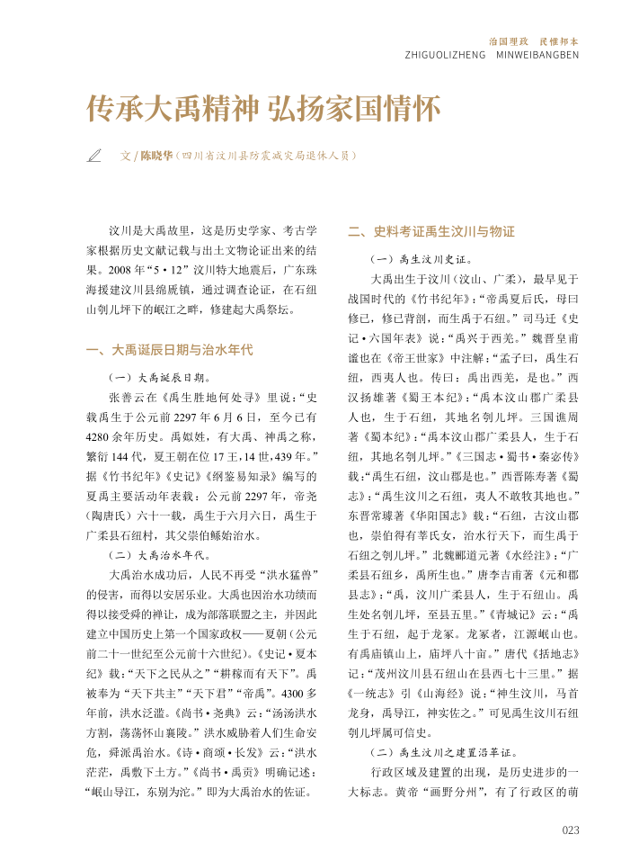 【四川历史名人】传承大禹精神 弘扬家国情怀 ‖ 陈晓华
