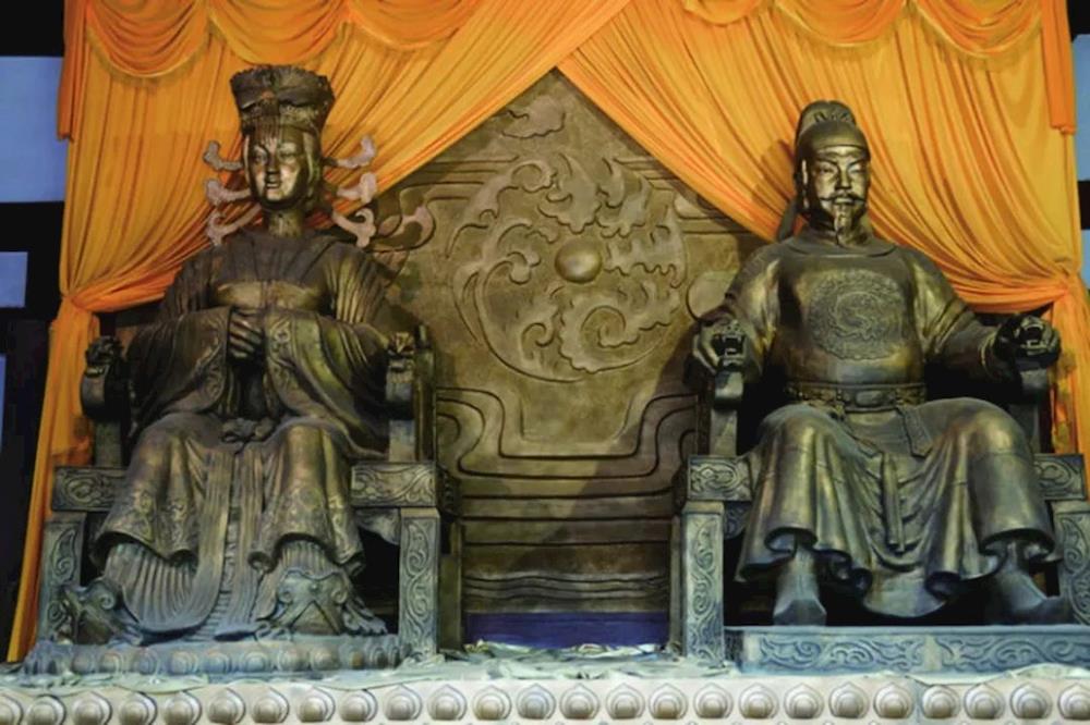 二圣殿 供奉着唐高宗和武则天二圣。唐贞观二十三年(649),唐高宗李治即位。他费尽心思,终于在655年废掉王皇后,改立武氏为后。唐显庆(656—661)末年,高宗患风眩头重,目不能视,难于操持政务,皇后武则天逐渐掌握朝政,朝廷内外称他们为“二圣”。史书记载说:麟德元年(664)后,每次上朝议事,帝坐于东间,后坐于西间,政无大小,皆于闻之,天下大权,悉归中宫,黜陟、杀生,决于其口,天子拱手而已,中外谓之“二圣”。这在中国历史上也是唯一的现象。