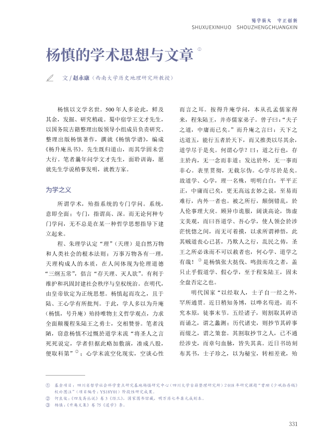 【历史文化名人】杨慎的学术思想与文章 ‖ 赵永康