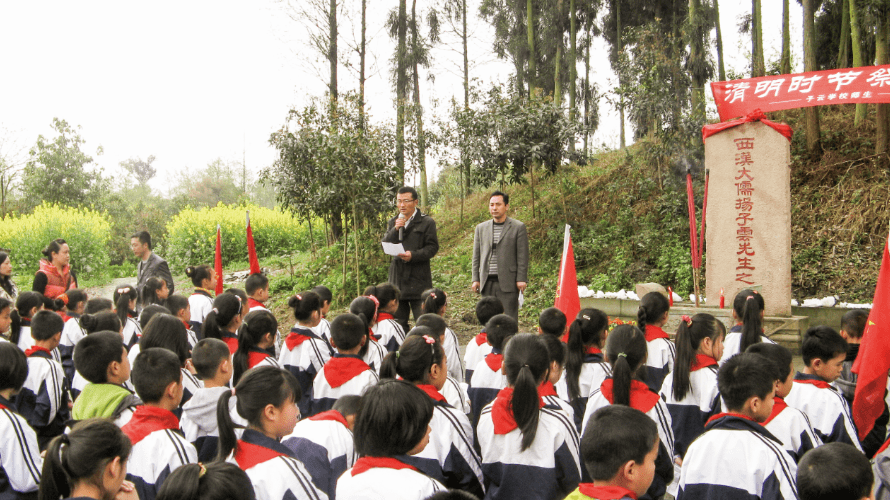 成都市郫都区子云学校师生清明节在扬雄墓前祭奠