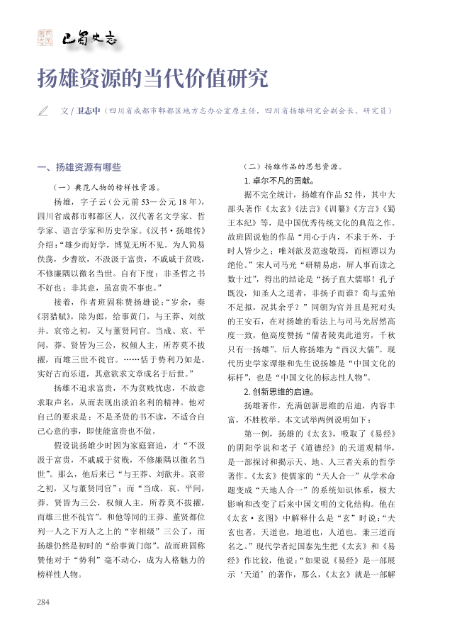 作者:卫志中(成都市郫都区地方志办公室原主任,四川省扬雄研究会副会长、研究员)