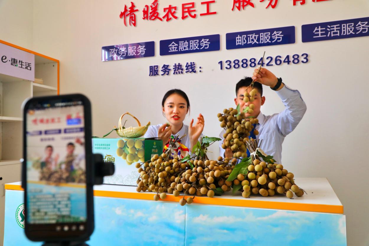 泸县农商银行主播王紫菡、石郑鹏正在推介泸县鲜桂圆