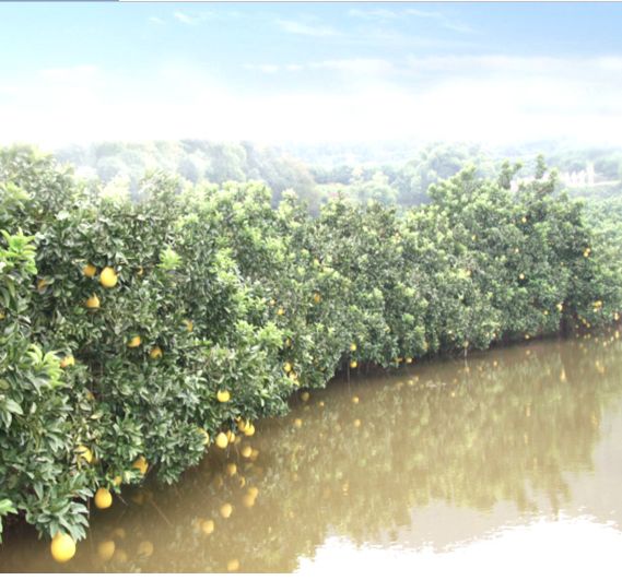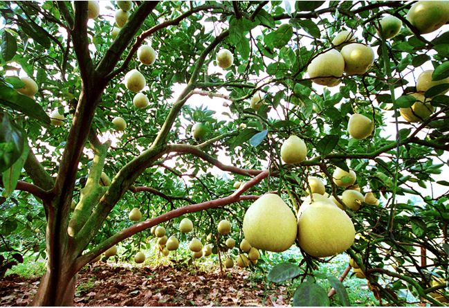 通贤柚种植区海拔为269~298米,土壤为紫色土、水稻土和冲击土,PH值在6.8~7.6之间,土壤保水保肥性强,供需协调,土壤养分有机质含量为2.11%,全氮0.123%,全钾2.58%,矿质营养十分丰富。