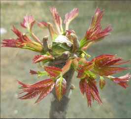 红叶椿 红叶椿又名红叶臭椿,乔木型春季红叶观赏新品种,树姿优美,抗逆性强,适应性广,叶色红艳,持续期长。