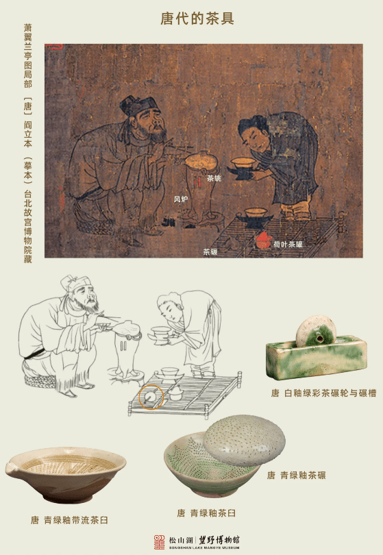 宋代因盛行点茶,程序比唐代煮茶简略些,有些烧水的器具就不划在茶具范围之内。又因为饮茶不再加盐,所以也就不需要鹾簋之类的器具。