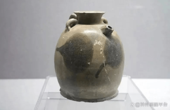 唐 长沙窑青釉褐彩双系“茶瓶”款壶(图片来源:神州茶韵平台)